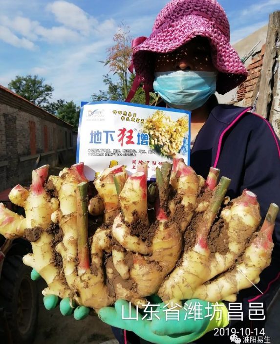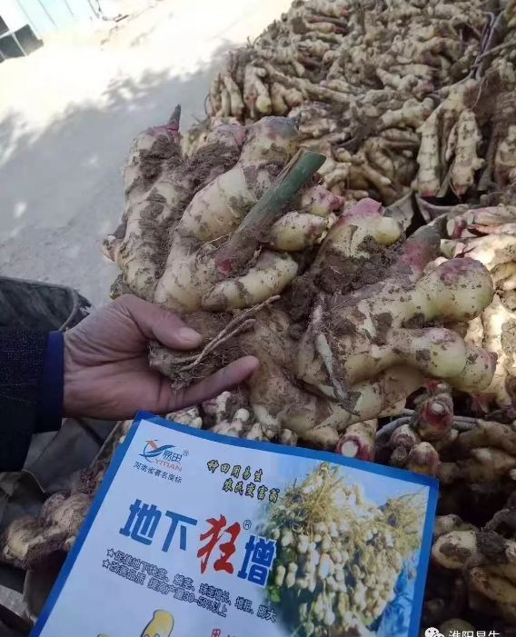 2019年10月14日,我們易生科技“地下狂”系列售后服務組來到我們正收獲大姜的種植戶家中,大姐家噴施了地下狂增5遍,噴施過地下狂增的大姜顏色金黃、姜指頭粗胖、塊頭大、姜絲多、密度大、耐儲存。從大姐臉上的笑容來看,對于今年的收成是真滿意!